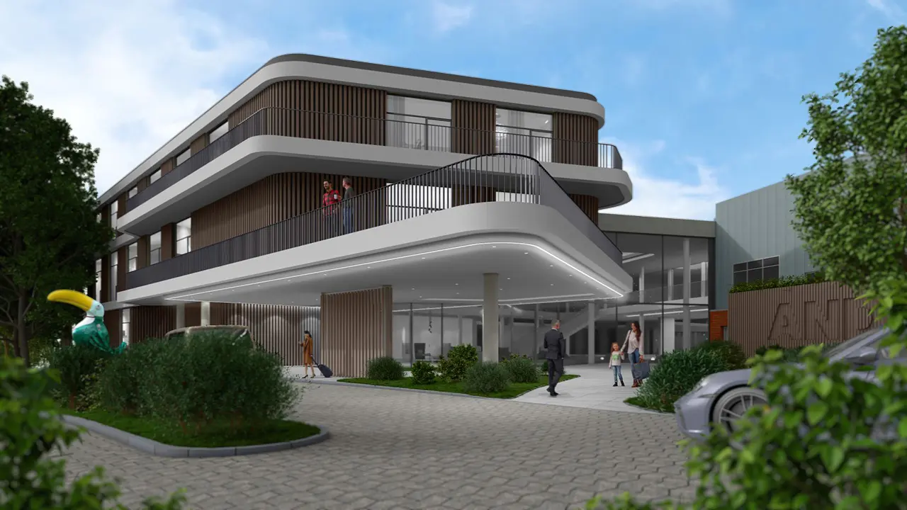 Das Exterieur konnte ich umsetzen. In Kombination mit Drohnenaufnahmen, die ich vor Ort machen konnte, entstanden so eindrucksvolle, fotorealistische Bilder, mit deren Hilfe Bewohner dieses attraktive Ensemble kennenlernen können, noch bevor es voraussichtlich 2026 fertiggestellt werden kann. Obendrein konnte ich bei der Brand Creation unterstützen und habe den Namen QUIN entwickelt und die Website entworfen und umgesetzt.
